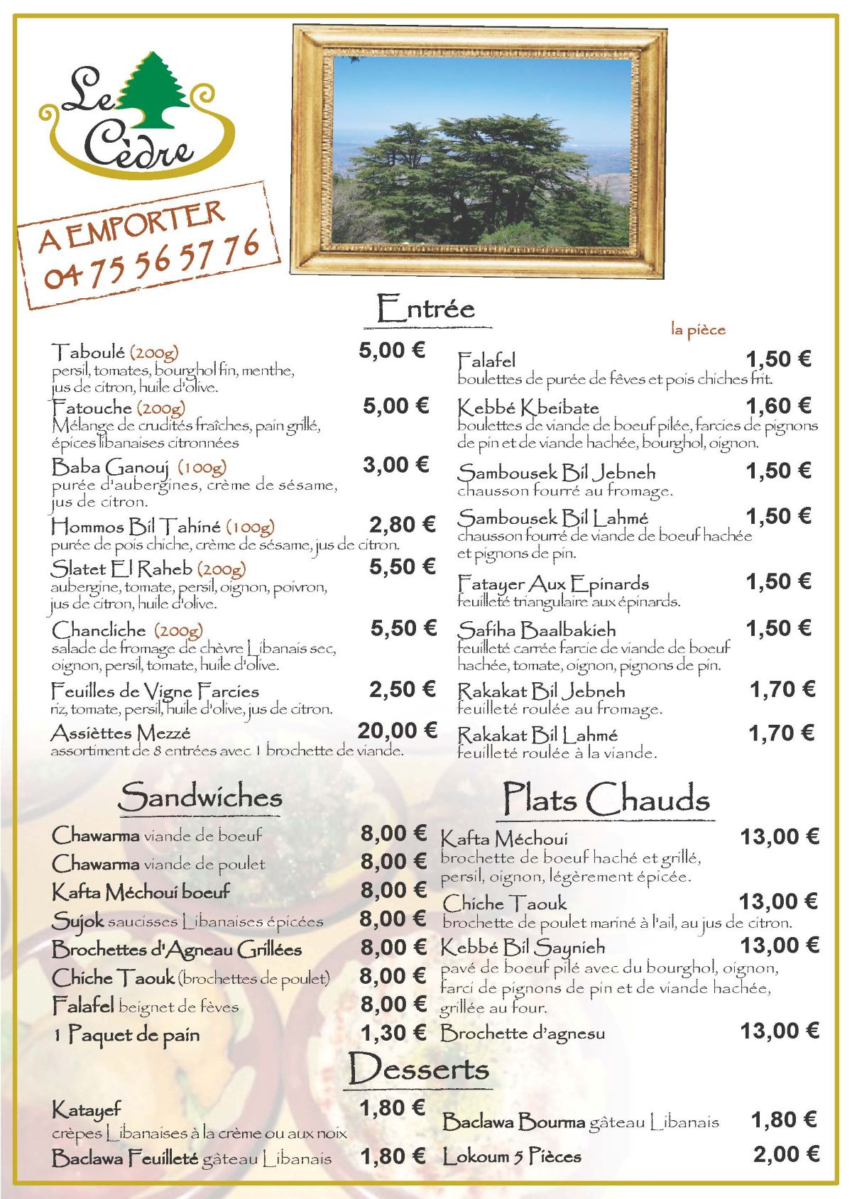 Restaurant "Le Cèdre" 4 rue Balthazar Baro 26000 Valence Tél / Fax : 04.75.56.57.76 et 06.29.59.20.58